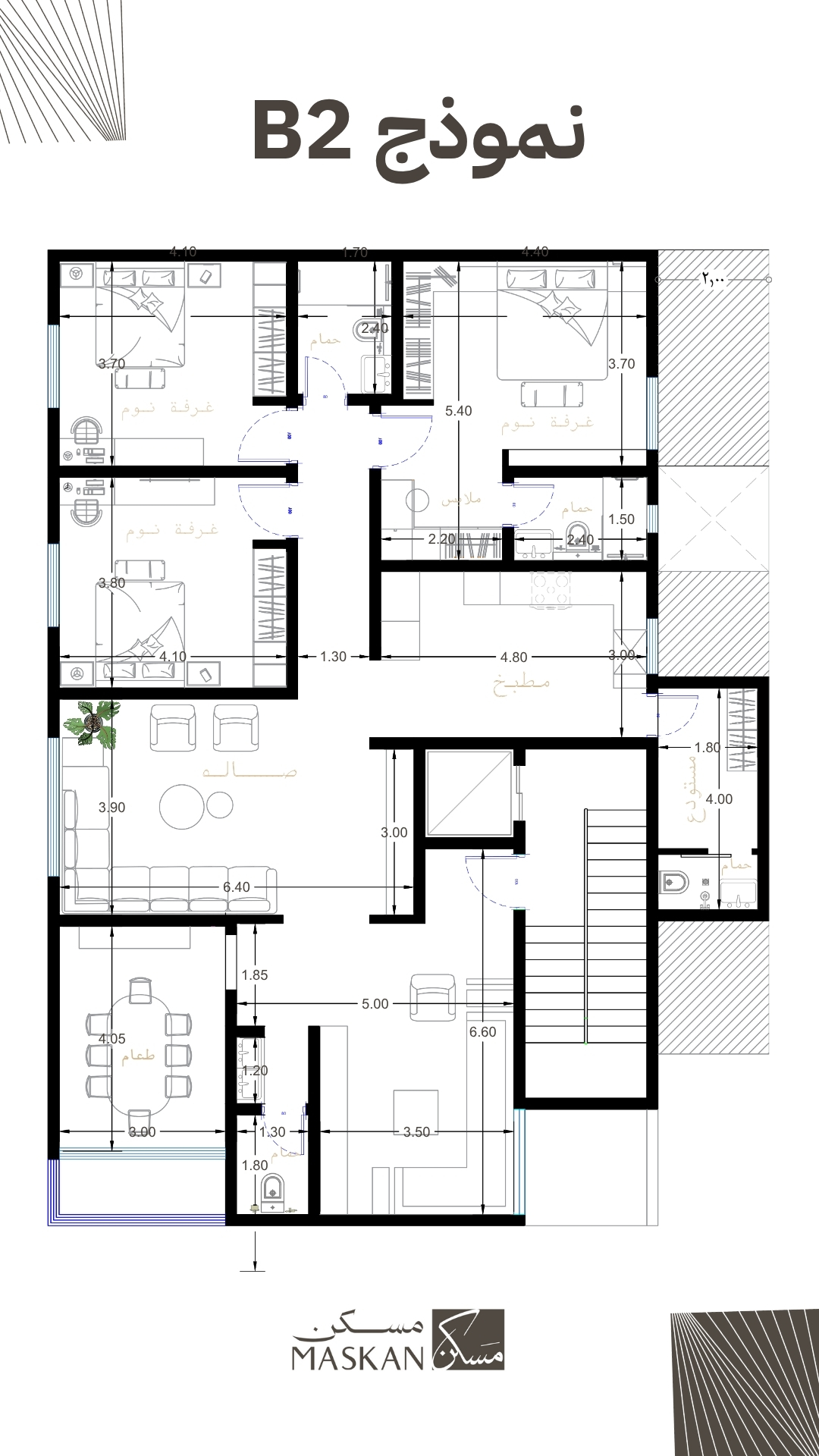 يقدّم نموذج B2 تجربة سكنية متكاملة تجمع بين الرحابة، الخصوصية، وحسن توزيع المساحات.